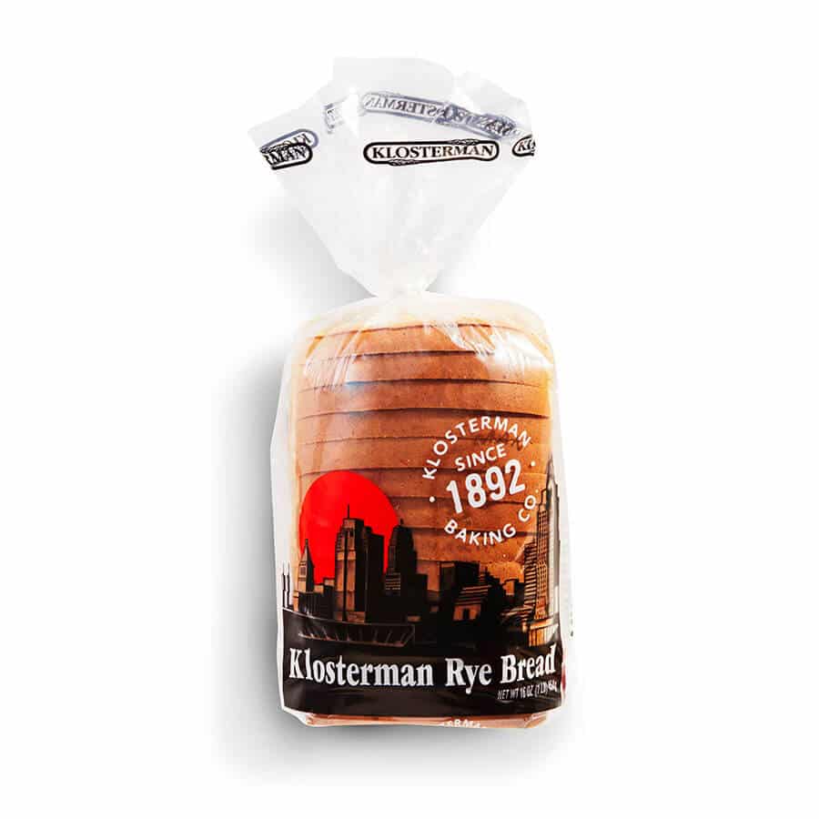16 ounce round-top sliced light rye bread half loaf with 13 usable slices per loaf and is packed in Klosterman branded printed packaging. Designed for both CPG commercial grocery shelf and foodservice accounts.
